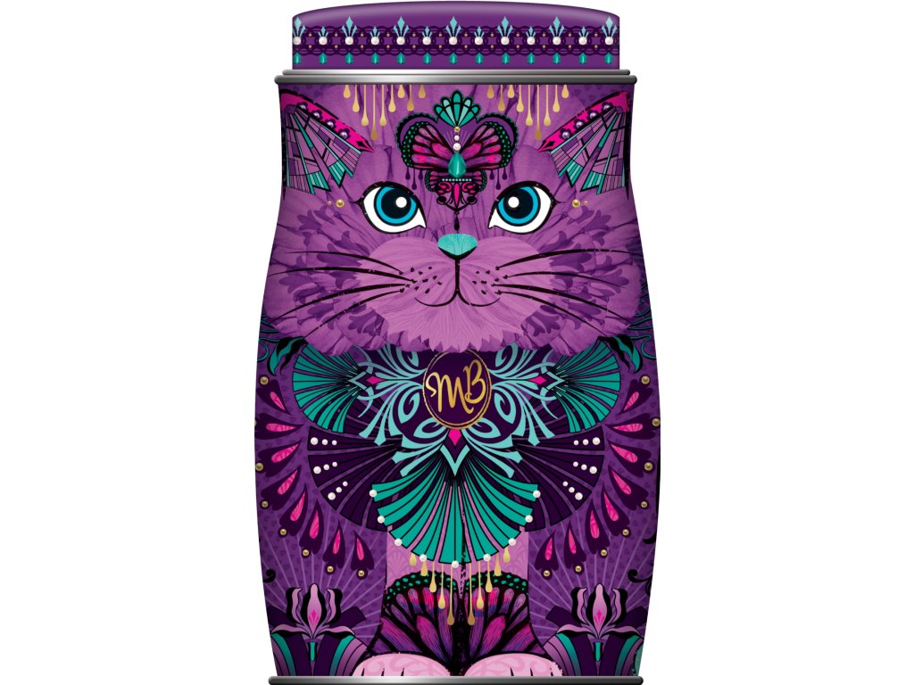 MONTY BOJANGLES VIOLET REBEL CAT TIN - ČOKOLÁDOVÉ LANÝŽE V DÁRKOVÉ DÓZE KOČKA "FIALOVÁ REBELKA"