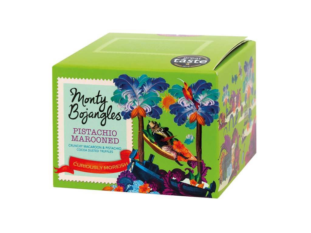 MONTY BOJANGLES PISTACHIO MAROONED - FRANCOUZSKÉ ČOKOLÁDOVÉ LANÝŽE S DRCENÝMI MAKRONKAMI A PISTÁCIOVOU PŘÍCHUTÍ