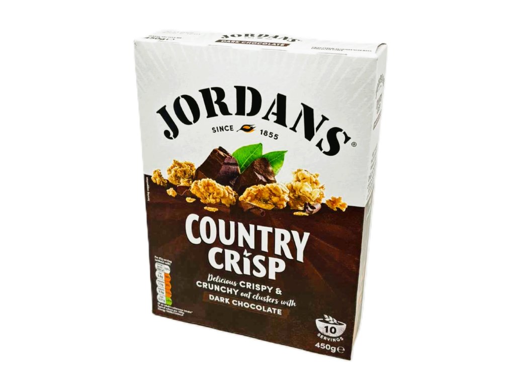 Cereálie Jordans utvářejí tradici v pečení křupavých müsli od 80. let 20. století. Typickým znakem řady Country Crisp jsou ovesné shluky, které v kombinaci s dokonalou směsí ovoce, ořechů nebo čokolády vytvářejí vyváženou chuť. Navíc díky unikátní pečící metodě se v mléku nerozpouští a udržují si své typické „křupání“.