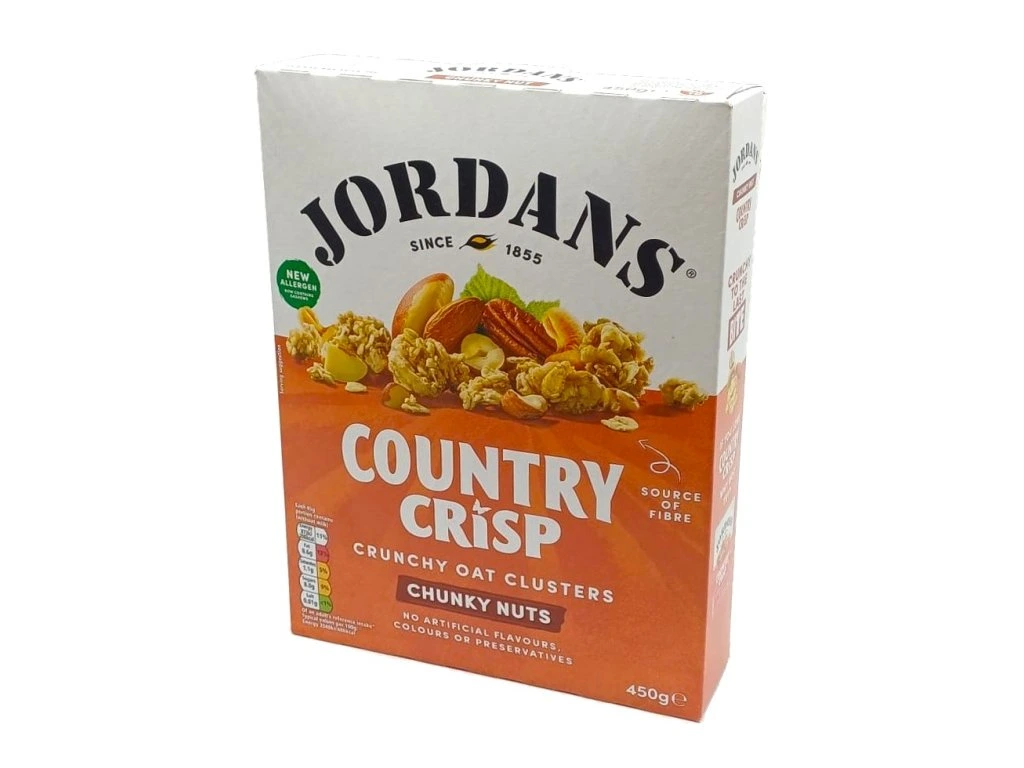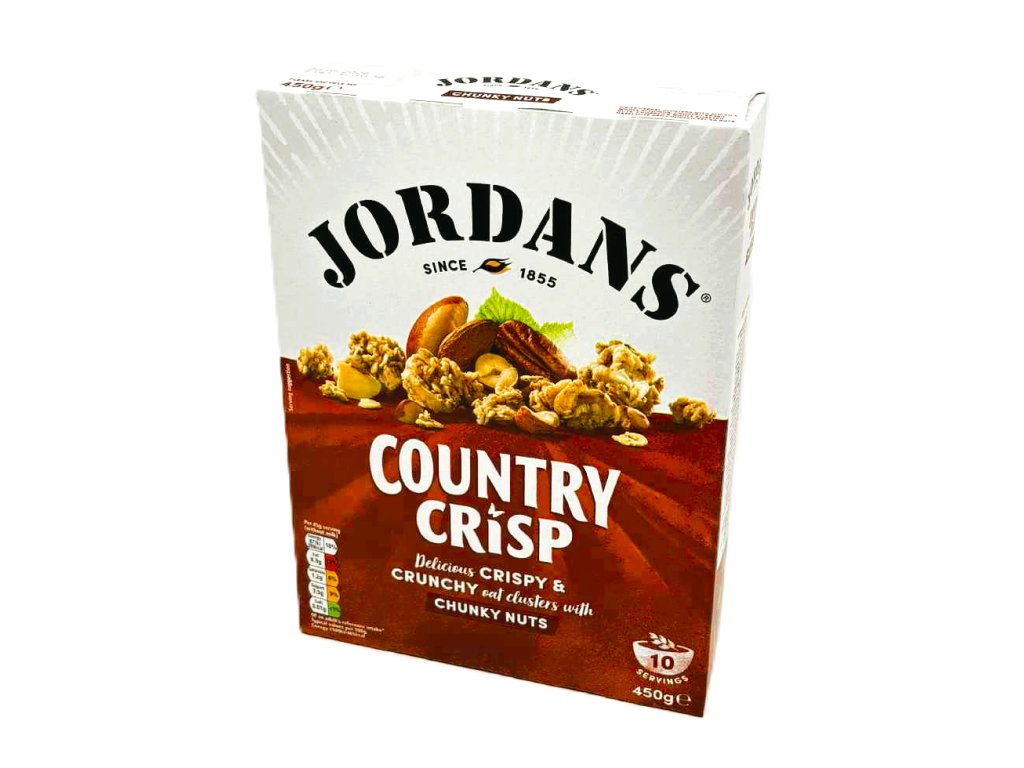 Cereálie Jordans utvářejí tradici v pečení křupavých müsli od 80. let 20. století. Typickým znakem řady Country Crisp jsou ovesné shluky, které v kombinaci s dokonalou směsí ovoce, ořechů nebo čokolády vytvářejí vyváženou chuť. Navíc díky unikátní pečící metodě se v mléku nerozpouští a udržují si své typické „křupání“.