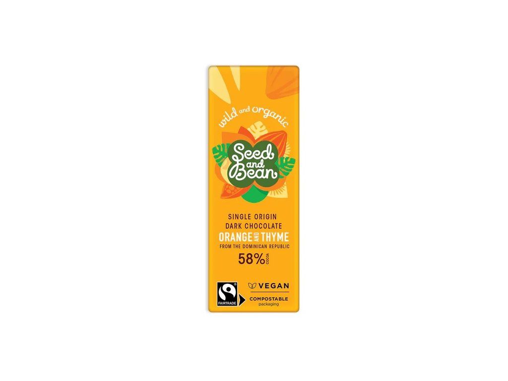 SEED & BEAN BIO HOŘKÁ ČOKOLÁDA POMERANČ A TYMIÁN, mini balení 25g