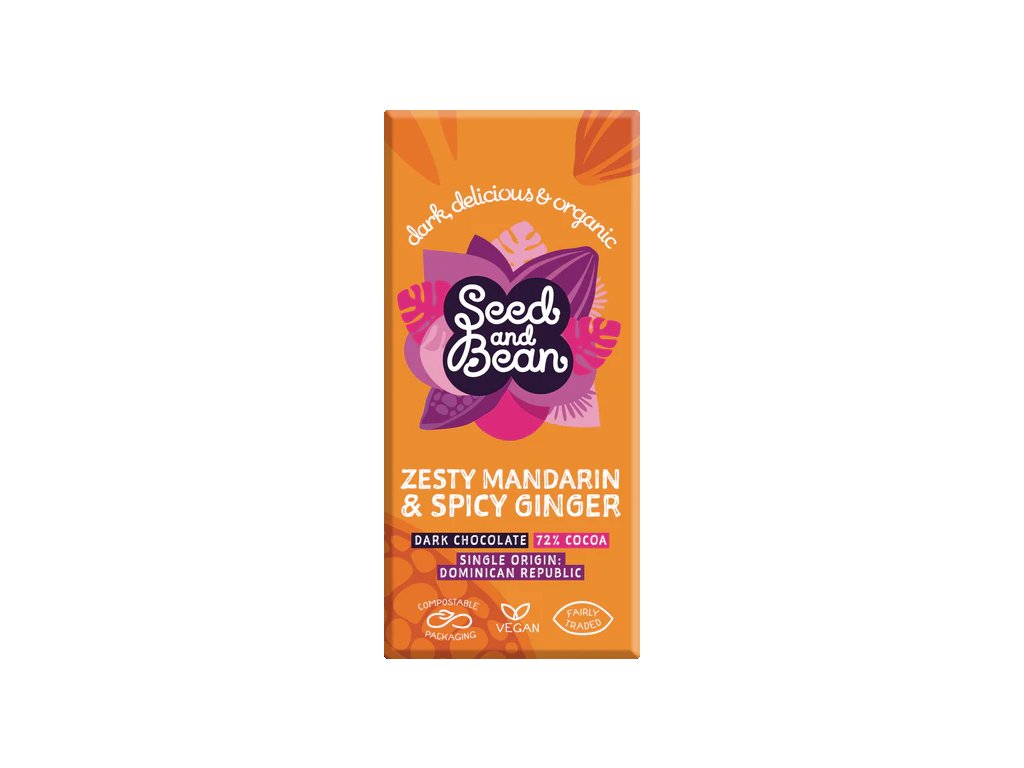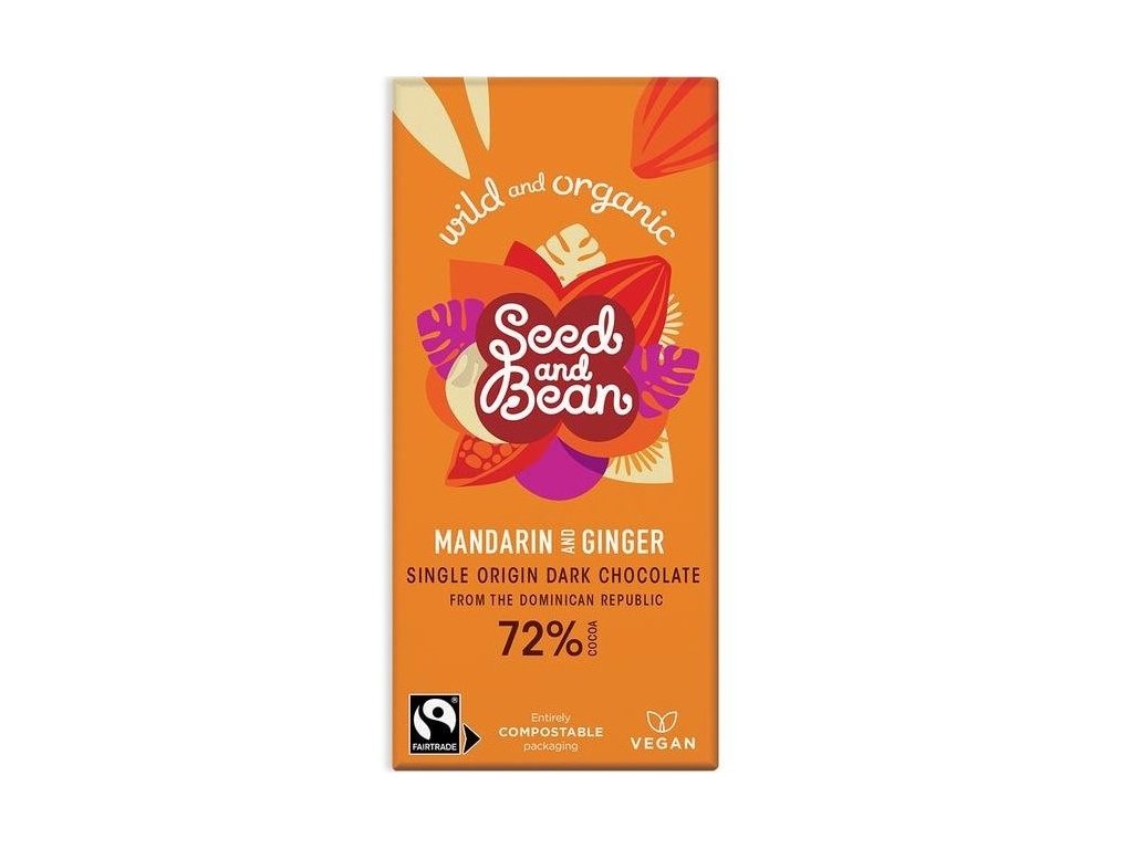 Seed & Bean BIO HOŘKÁ 72% ČOKOLÁDA MANDARINKA A ZÁZVOR